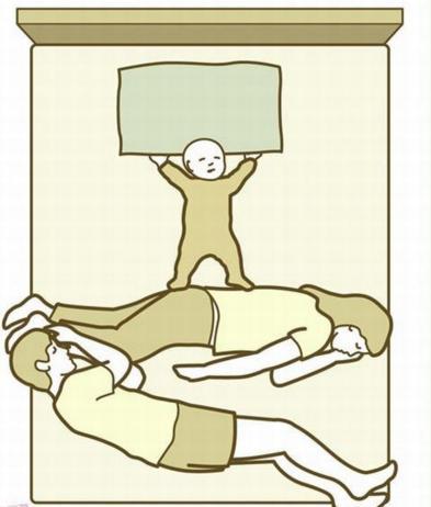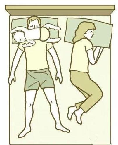 如果发现宝宝最喜欢大字中间睡,占了床一半,而爸爸和妈妈都被挤在床的一边,相互靠着睡。